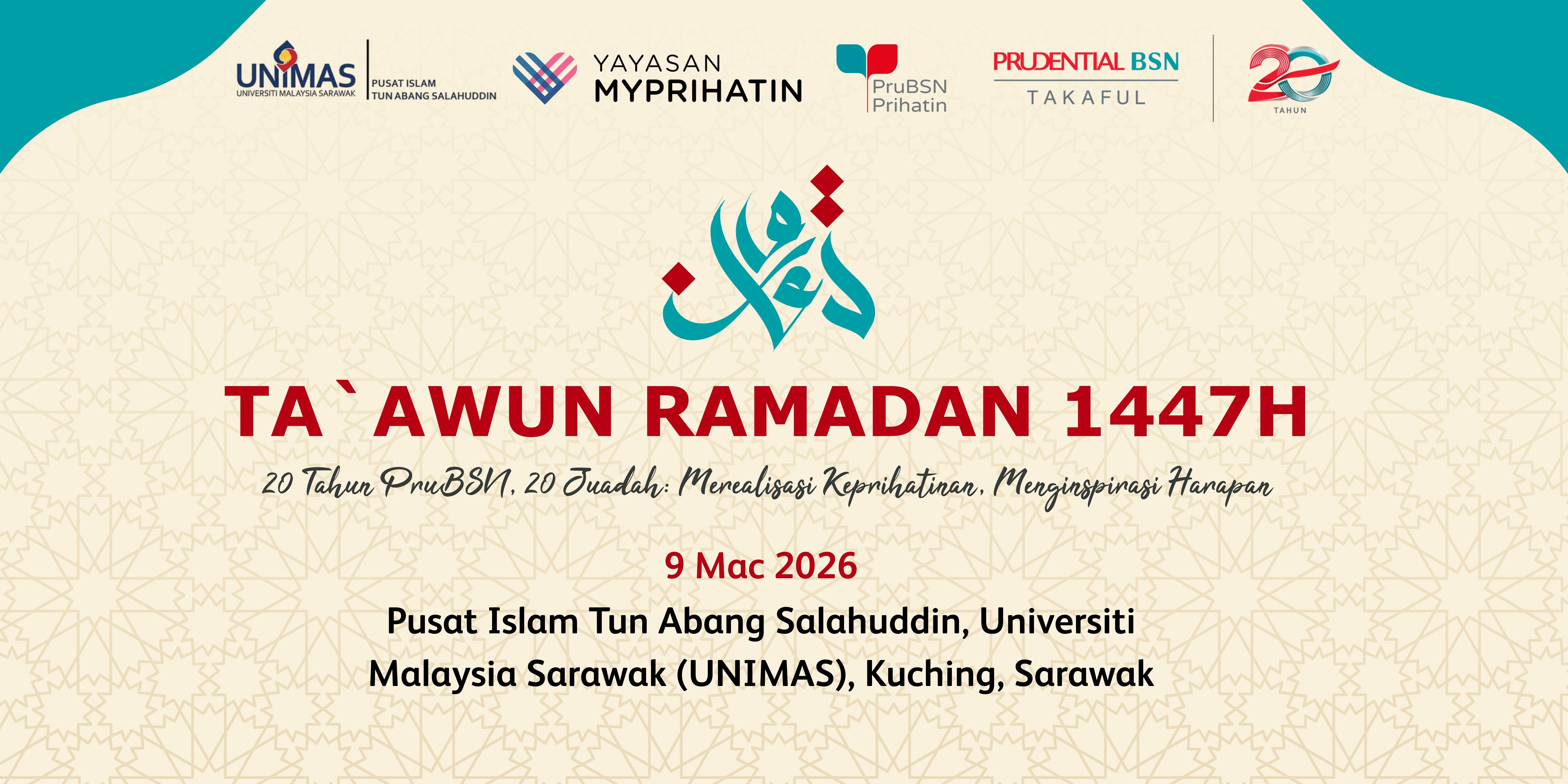 TA’AWUN RAMADAN 1447H 20 Tahun PruBSN, 20 Juadah: Merealisasi Keprihatinan. Menginspirasi Harapan 9 Mac 2026 Pusat Islam Tun Abang Salahuddin,